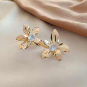 Material: Metal bem fino com formato de flor e zircônia oval no centro.